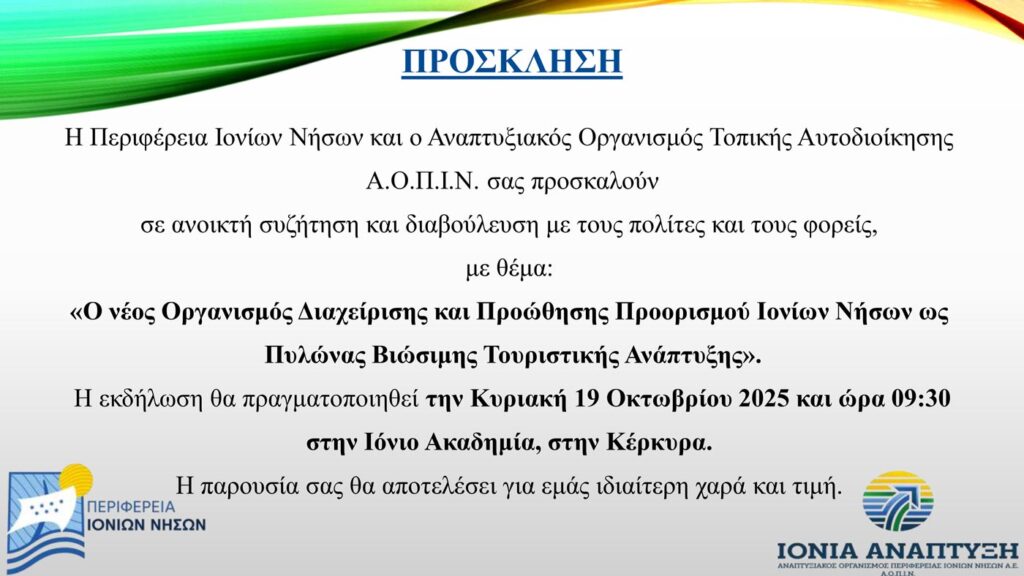 Με συνέπεια, φροντίδα και όραμα πάμε το Ιόνιο μπροστά